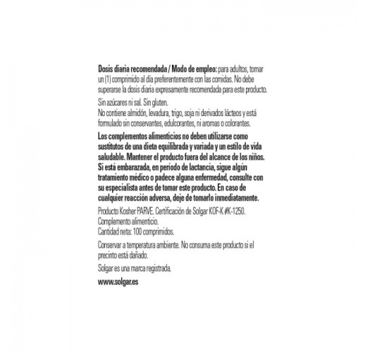 • No contiene almidón, trigo, derivados lácteos, soja, levadura, conservadores, ni edulcorantes o aromas.